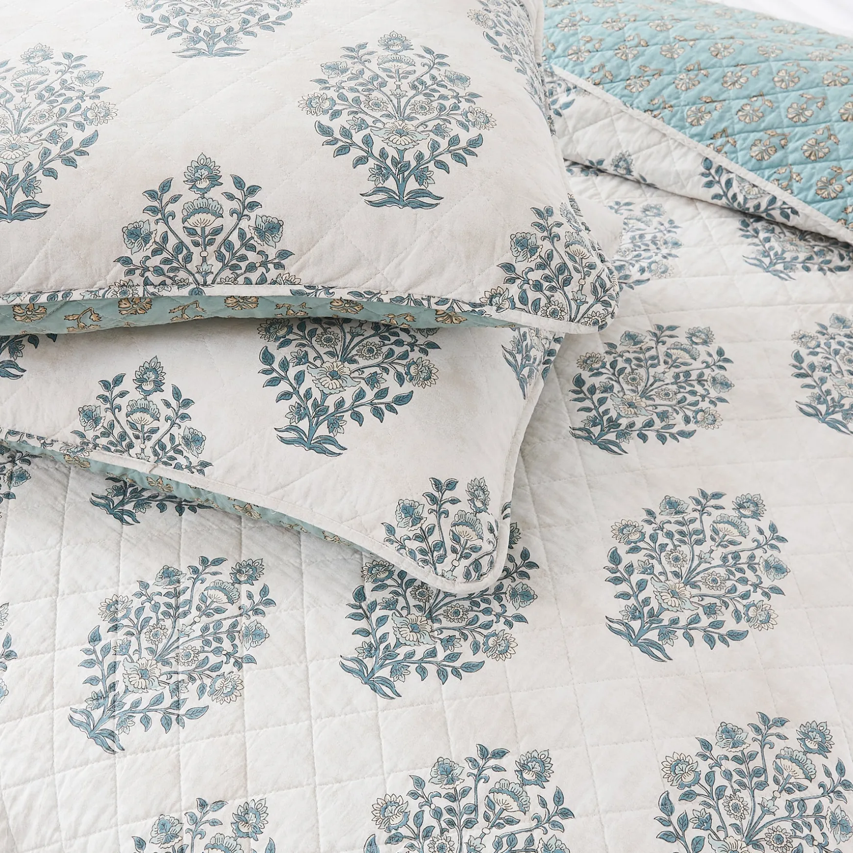 Sofia Flower Block Bouquet Reversible Cotton Quilt 3Pc Set