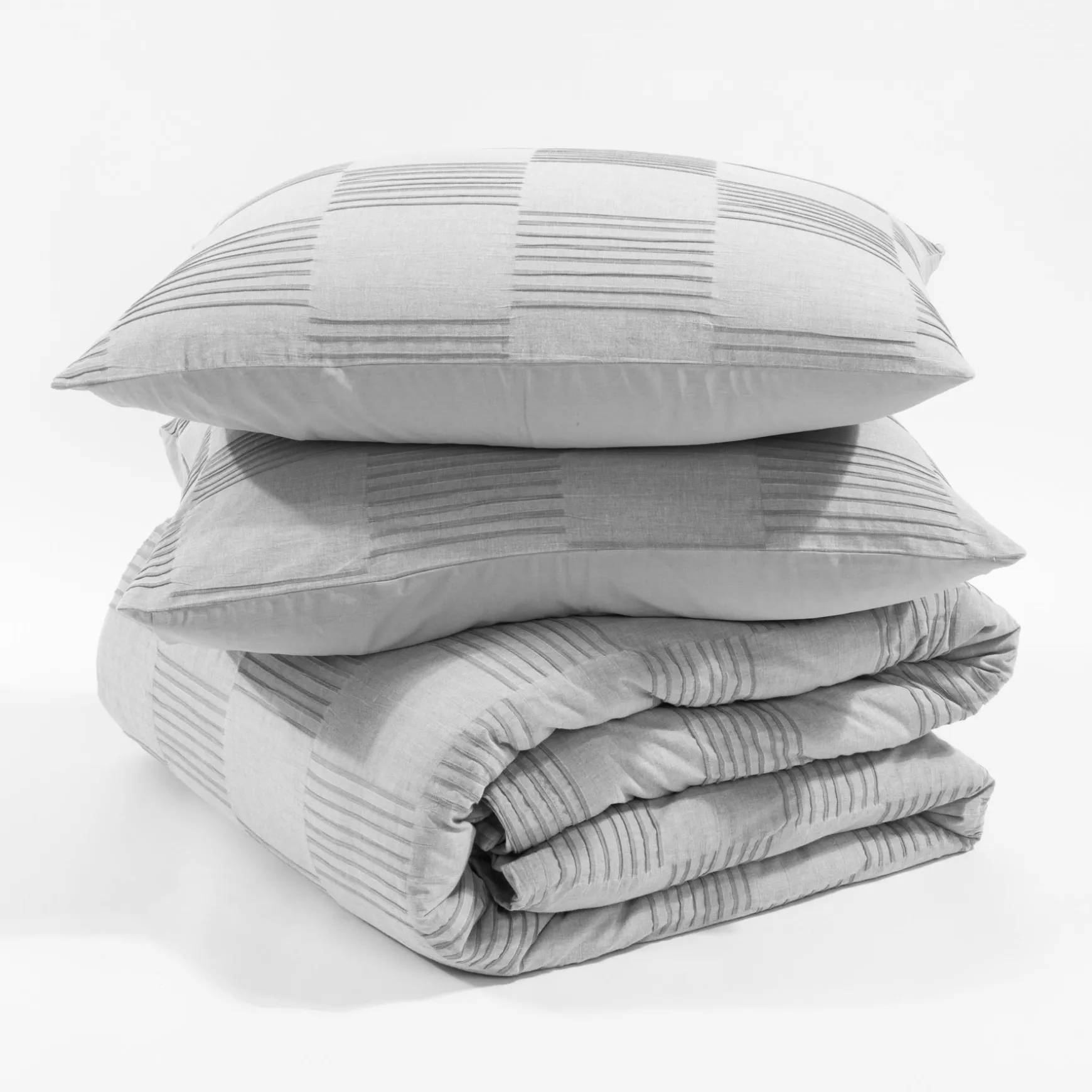 Style our Sorano Chambray Textured Jacquard Cotton Duvet Cover Set for a simple , yet cozy bedding option. The cotton blend fabrication is lightweight and soft to the touch, sure to keep you comfortable year round. With jacquard stripe details and a worn-in chambray look, this contemporary duvet cover set is great for all ages.