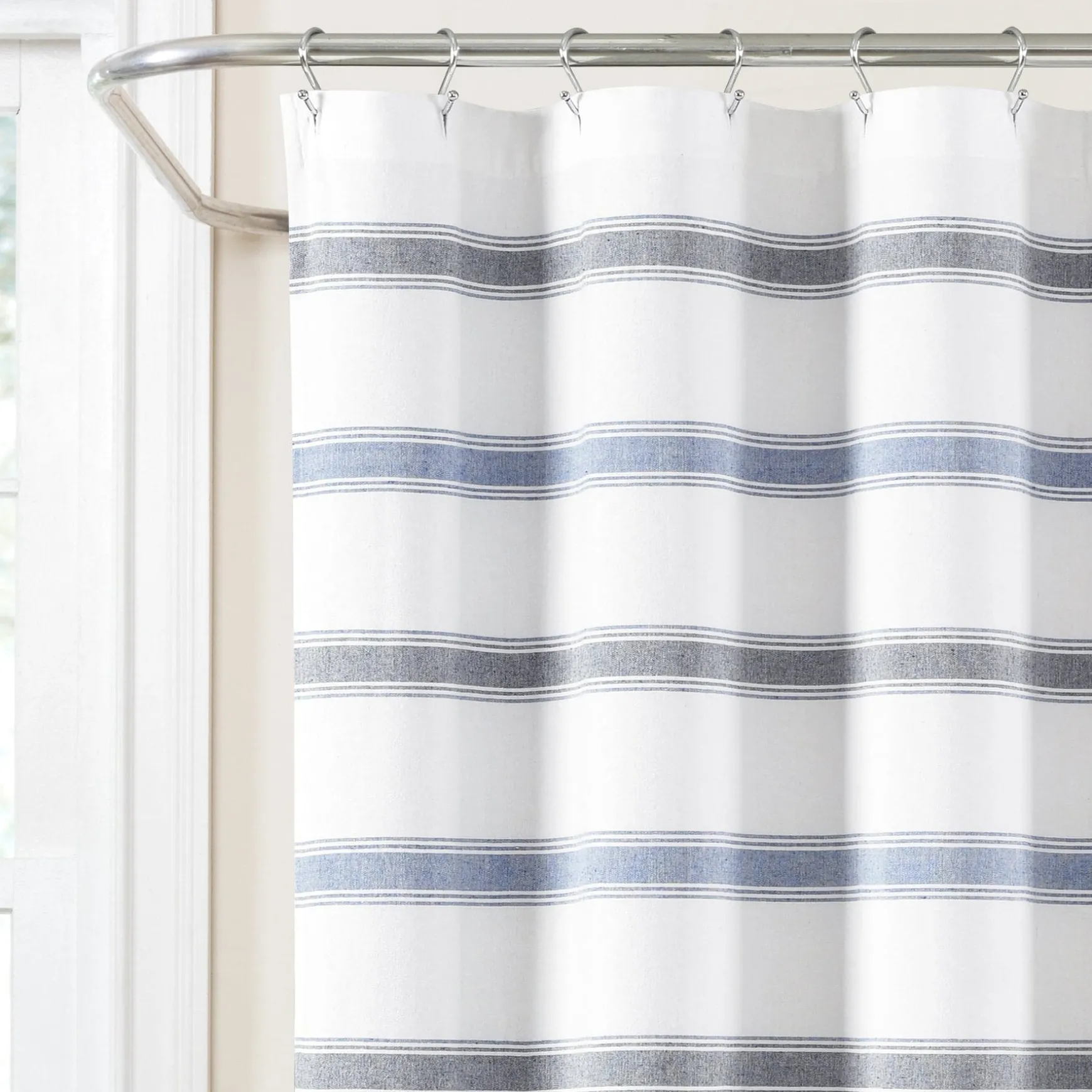 Constructed of yarn dyed recycled cotton, the simple stripe pattern fits well into many decor themes for your master, guest or teen’s bathroom. Use our Stripe Woven Textured Yarn Dyed Recycled Cotton Shower Curtain as part of your modern, farmhouse, hygge, traditional, or coastal bathroom decor.