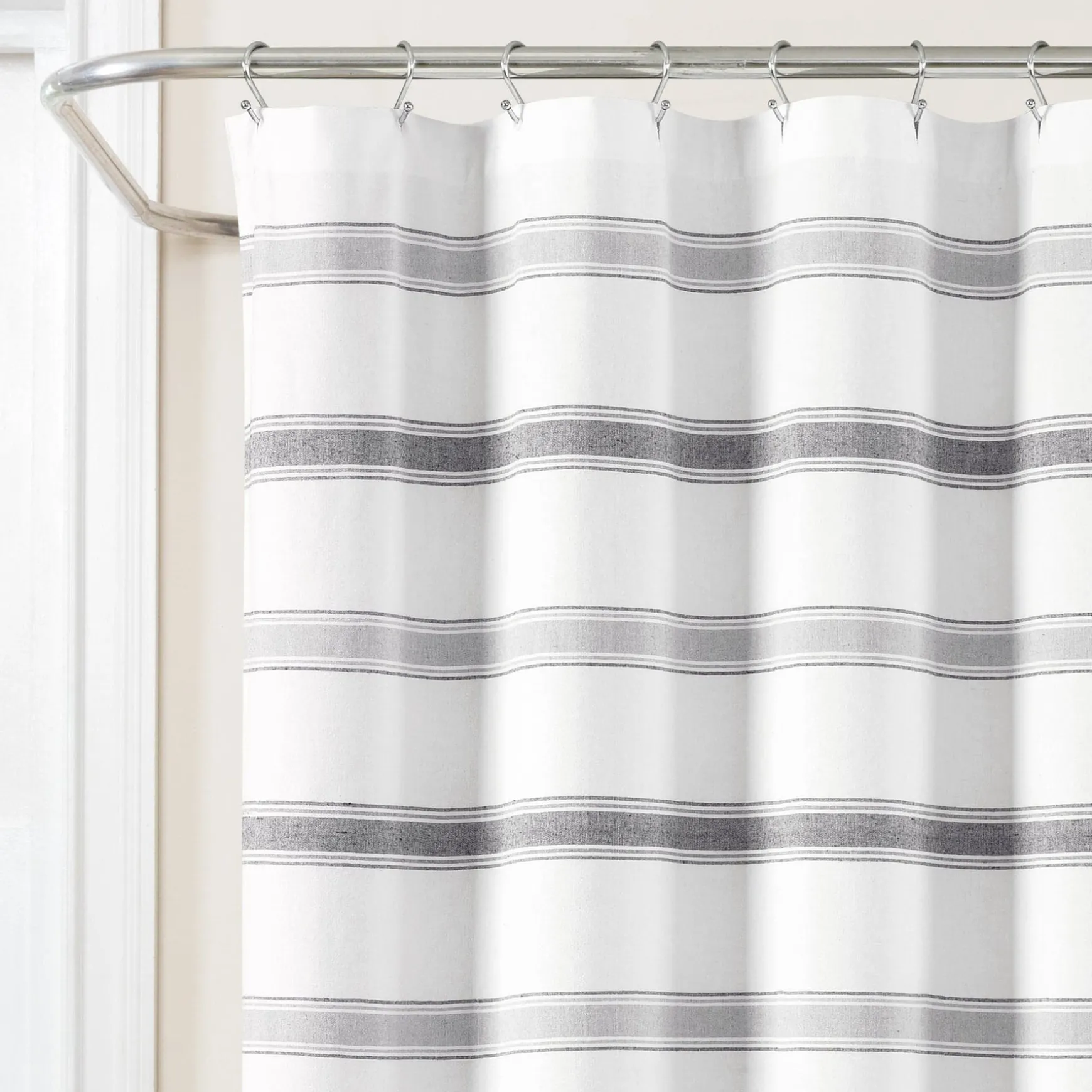 Our Stripe Woven Textured Yarn Dyed Recycled Cotton Shower Curtain adds the perfect touch of texture and style to your space without overwhelming the design. It will be easy to decorate around a shower curtain like this one with its neutral colors and neutral stripe pattern. You’ll have no problem finding matching bathroom accessories and bath linens.