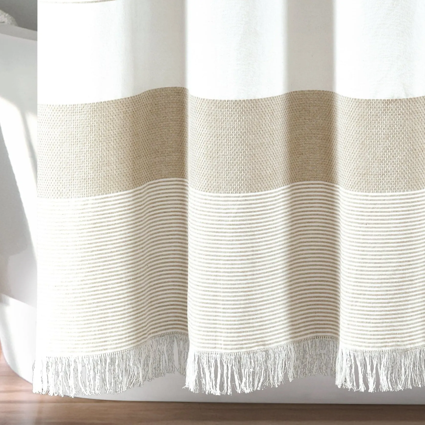 Our Stripe Yarn Dyed Tassel Fringe Woven Cotton Shower Curtain adds the perfect touch of texture and style to your space without overwhelming the design. It will be easy to decorate around a shower curtain like this one with its neutral colors and subtle pattern.