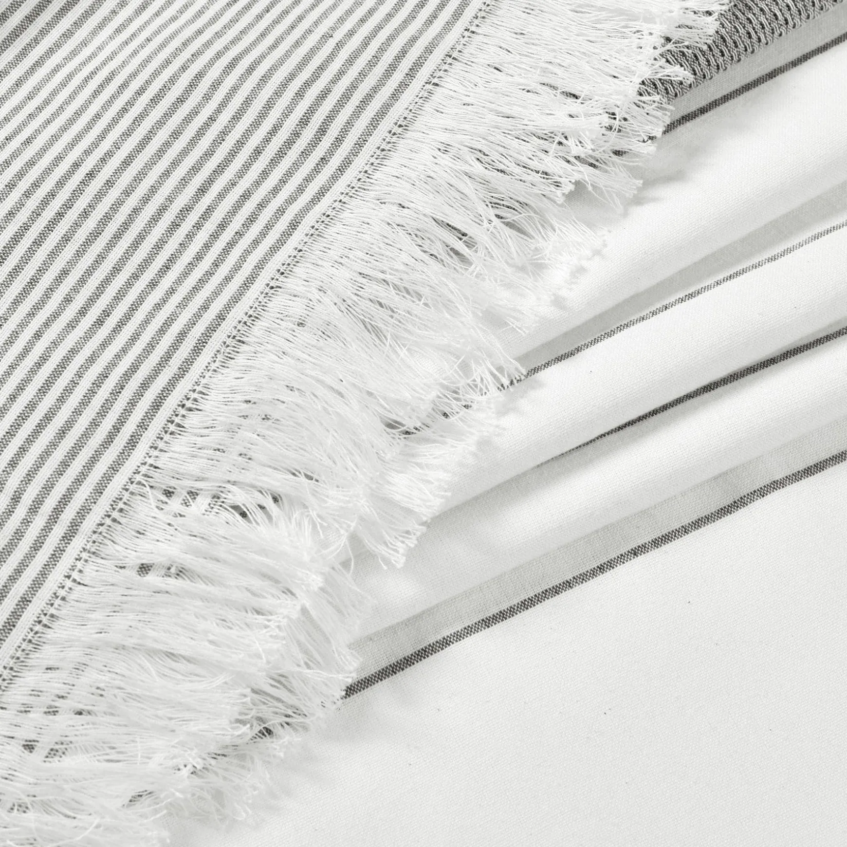 The cotton fabric gives the Stripe Yarn Dyed Tassel Fringe Woven Cotton Shower Curtain an excellent hand feel. Because it is a fabric shower curtain, we do recommend using a liner as well (not included).
