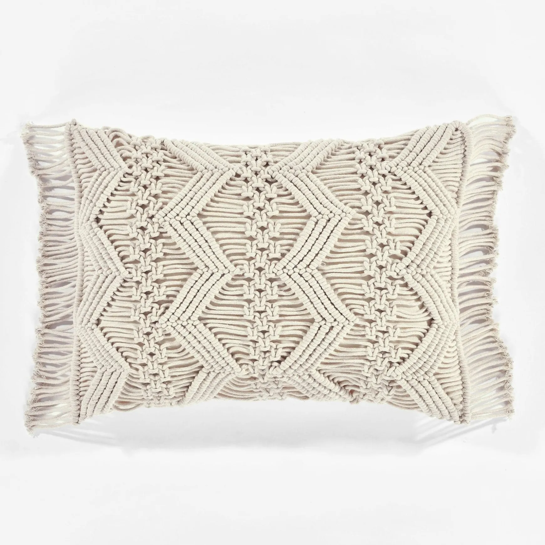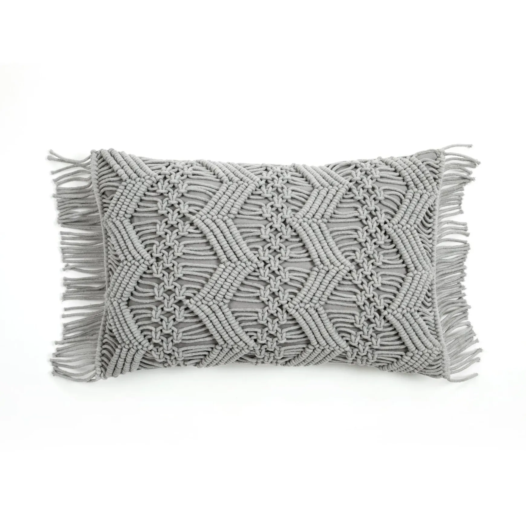 This reversible decorative throw pillow cover has a unique cotton macramé rope design on the front, while the back of the Studio Chevron Macrame Decorative Pillow Cover is soft 100% cotton fabric.