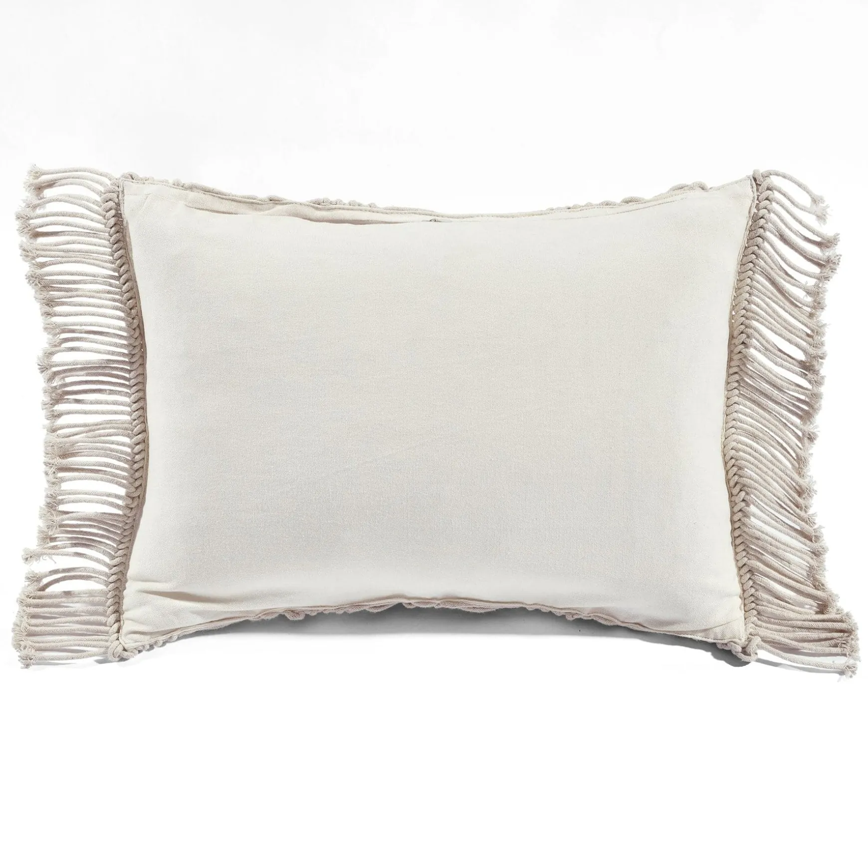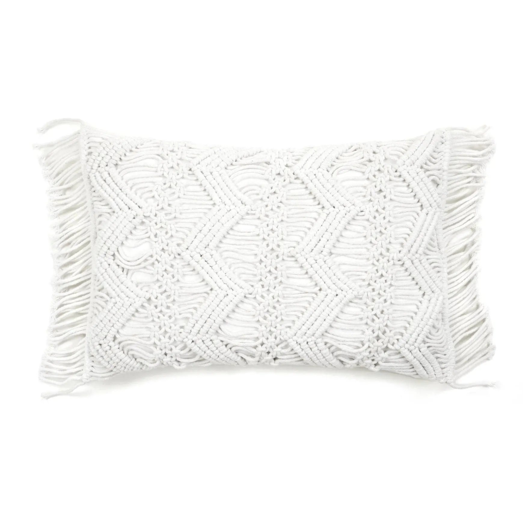 The bohemian style of this rectangular pillow cover is a sight to behold. The textured macramé pattern on the front gives it a contemporary look, while the fringe gives it more vintage style. Our Studio Chevron Macrame Decorative Pillow Cover makes a lovely accent piece to a bed, sofa or chair.
