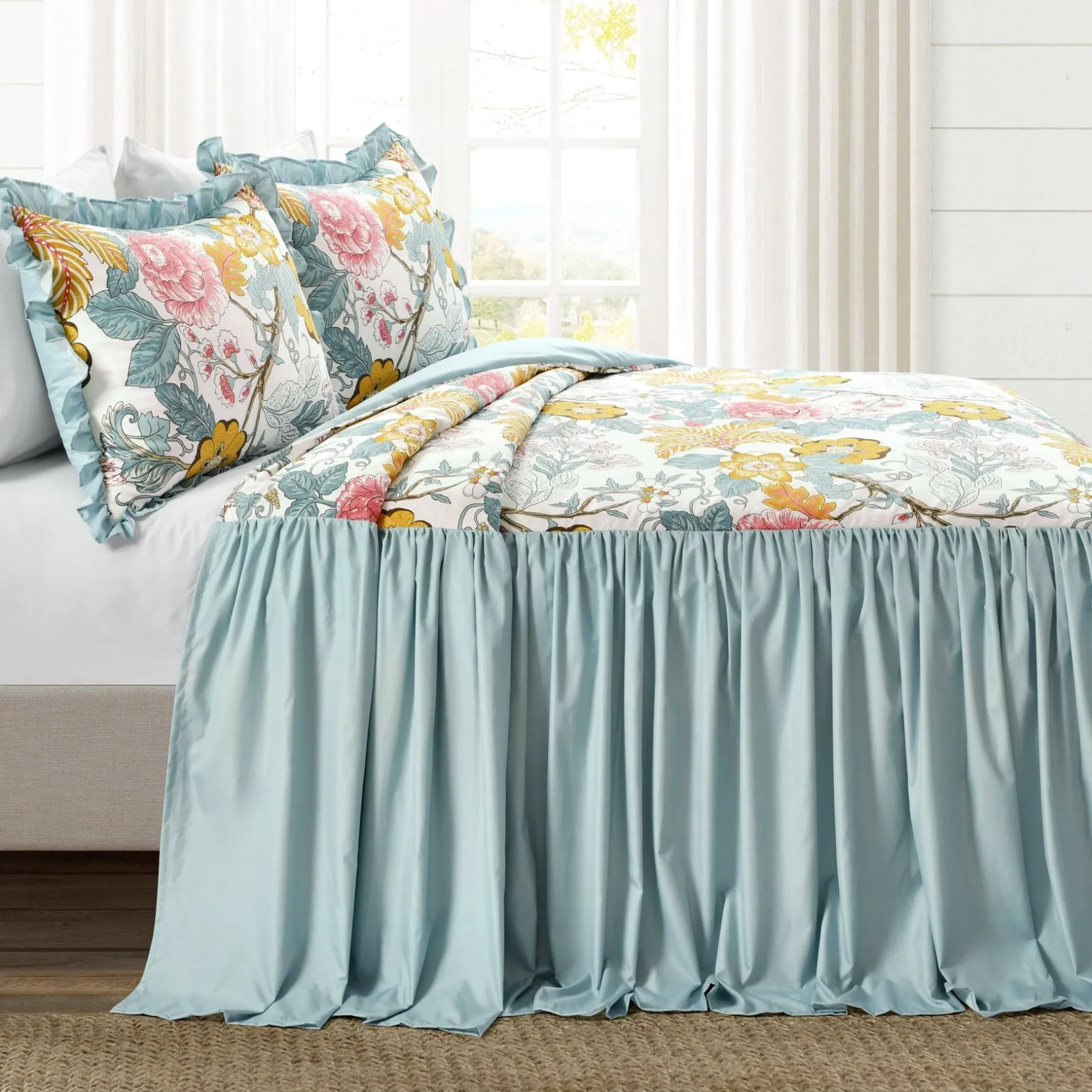 This Sydney 3 Piece Bedspread Set is the perfect piece to update your master or guest bedroom with vintage beauty and country cottage style. The colorful floral print adds life to any room and the ruching and ruffles add a chic vibe. It’s sure to add understated elegance to your space.