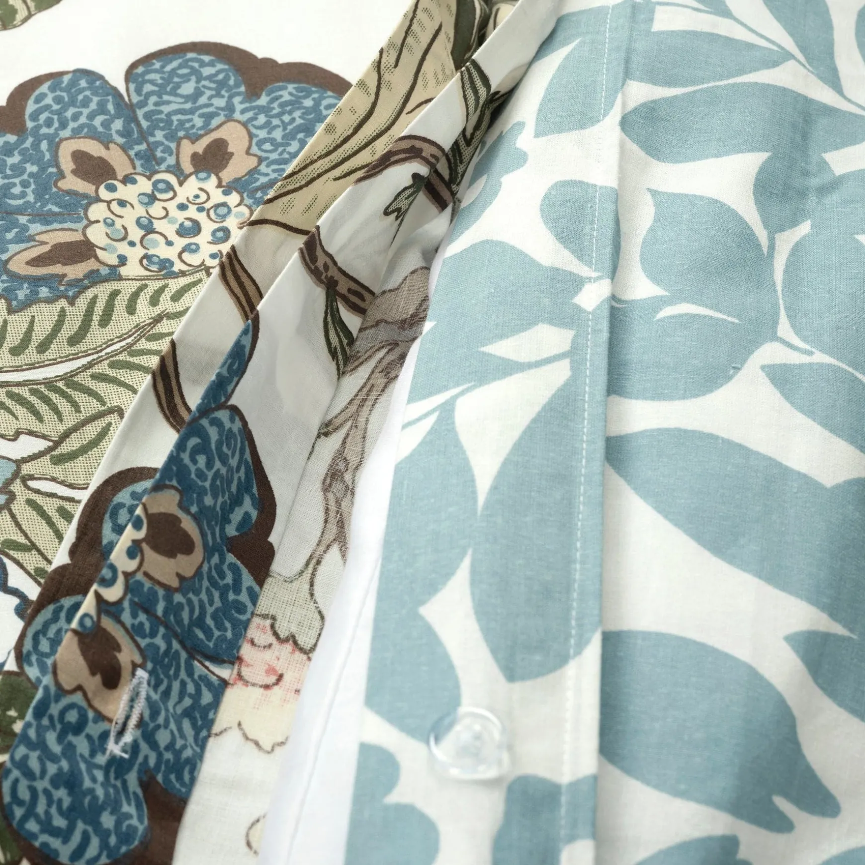 The reverse side of this Sydney Reversible Cotton Duvet Cover Set features a less colorful leaf pattern, giving you the option to switch up your bedroom style simply by flipping over the duvet cover and shams.