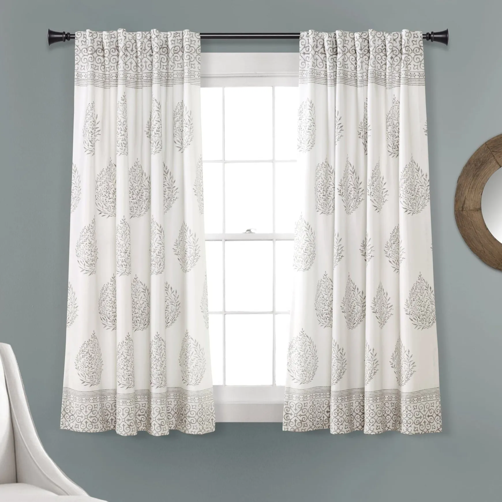 When you purchase the Teardrop Leaf Light Filtering Window Curtain Panel Set, you will receive two beautiful window panels. Each panel measures 52 inches in width. You can choose from lengths of 63 inches, 84 inches, 95 inches or 108 inches. This style is available in three color options, including gray, navy and blue, but some colors may not be offered in every size.