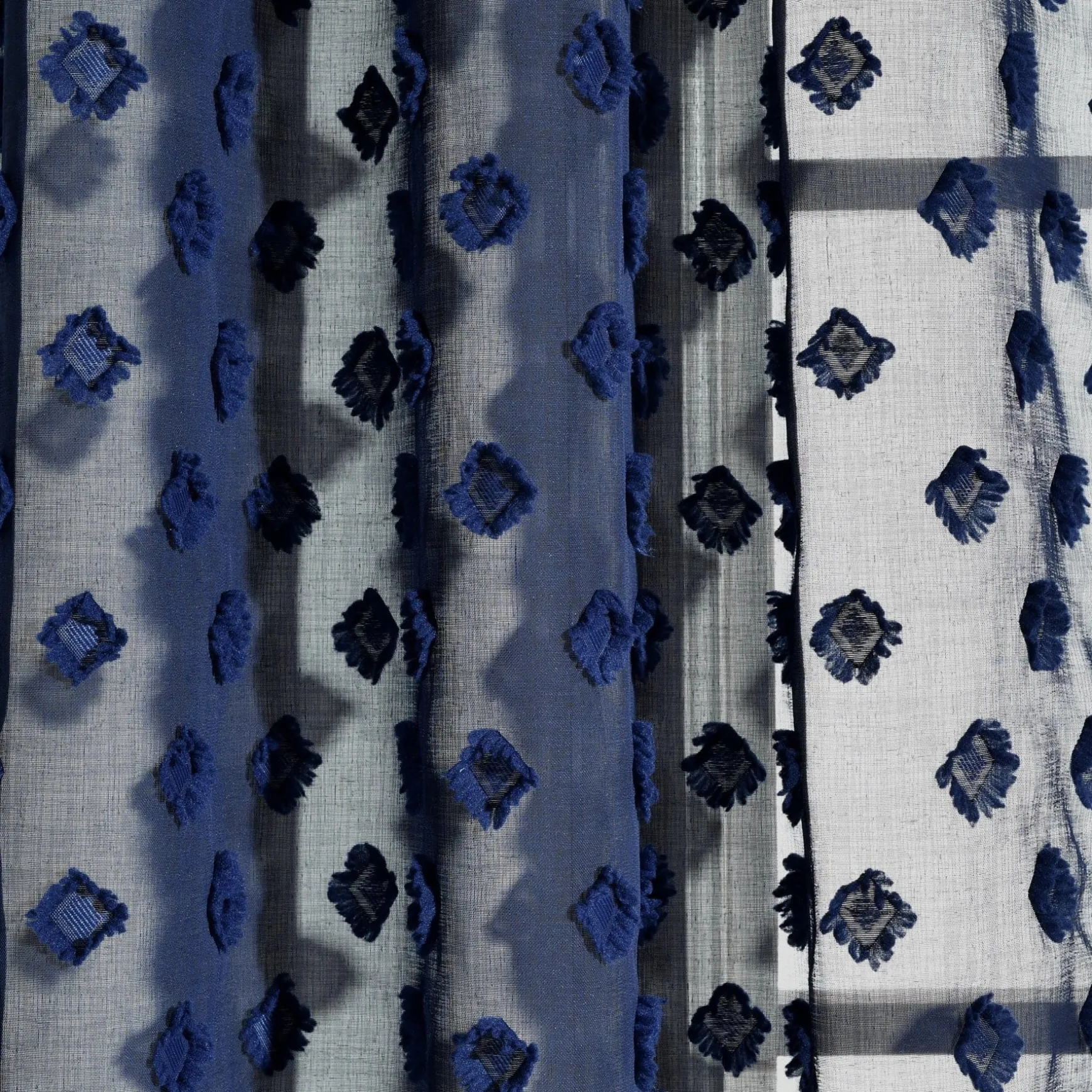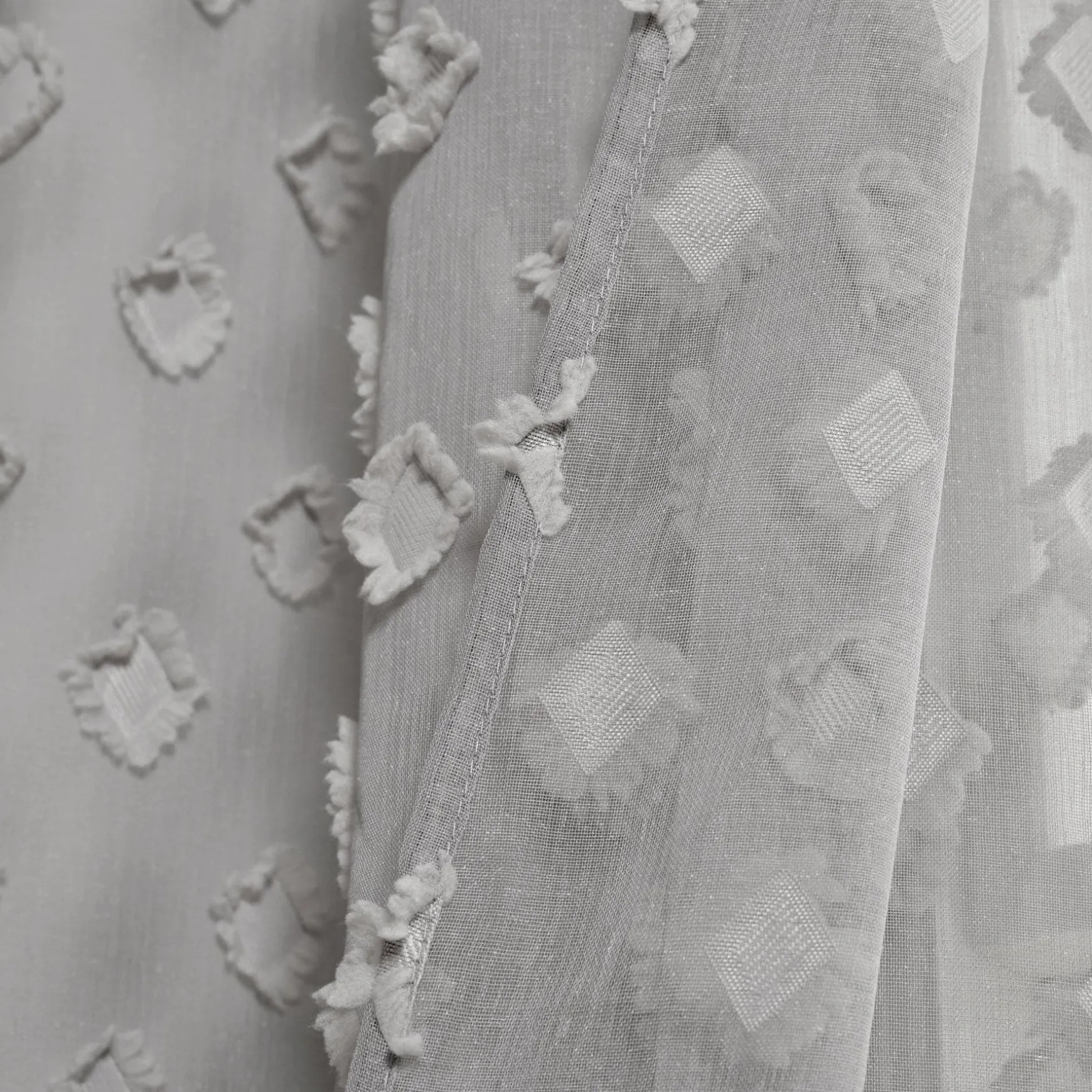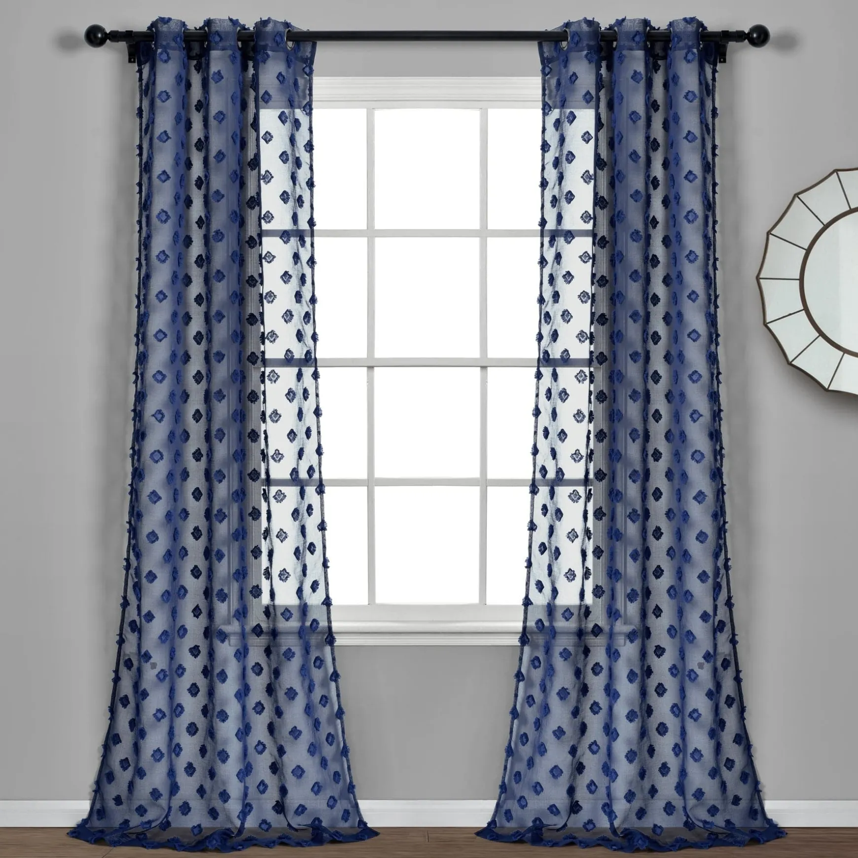 Our Textured Dot Grommet Sheer Window Curtain Panel Set is available in multiple neutral colors, including white, gray, blush and navy blue. Each panel is 38 inches wide and 84 inches in length. This curtain style is sold by the pair, so you will receive two panels per order.