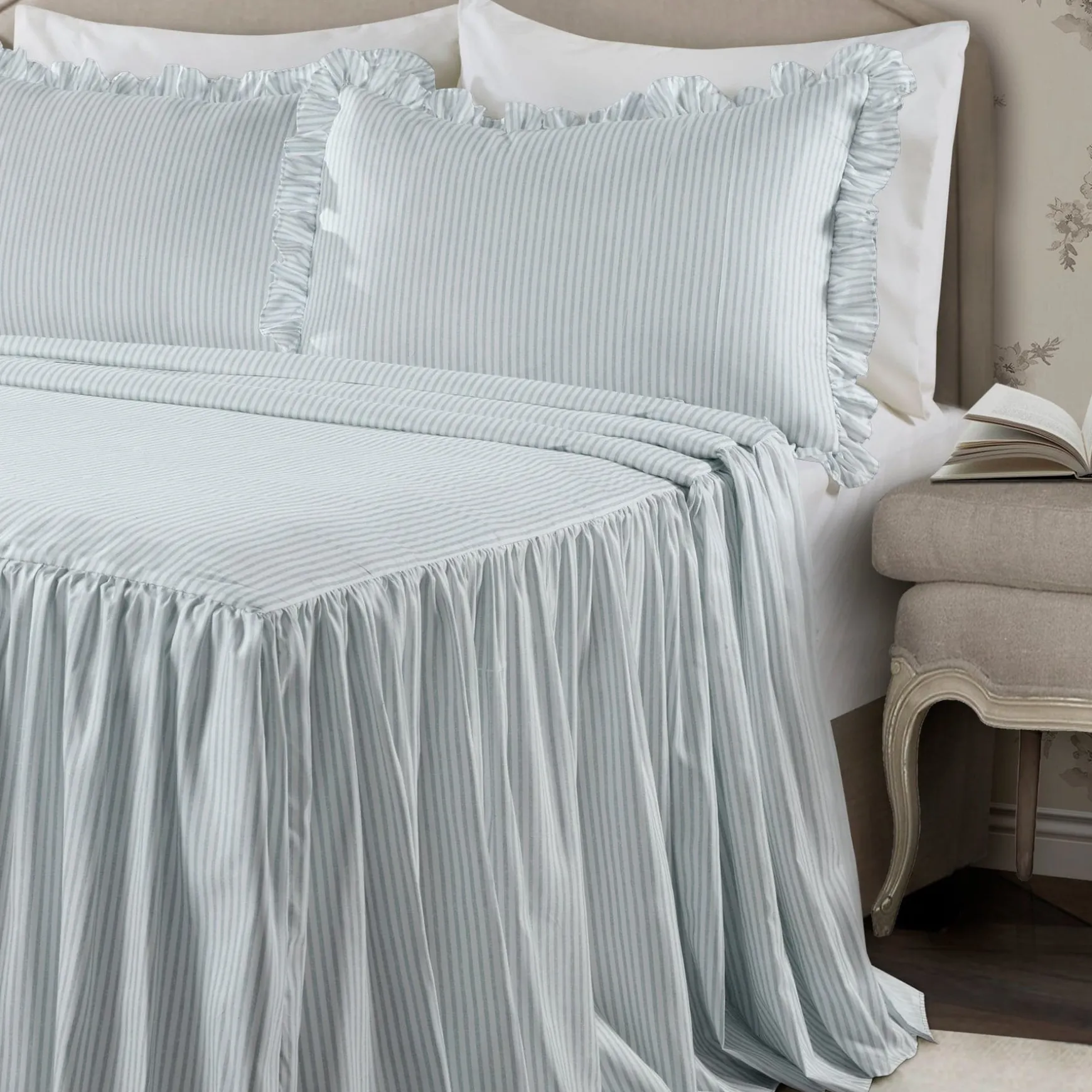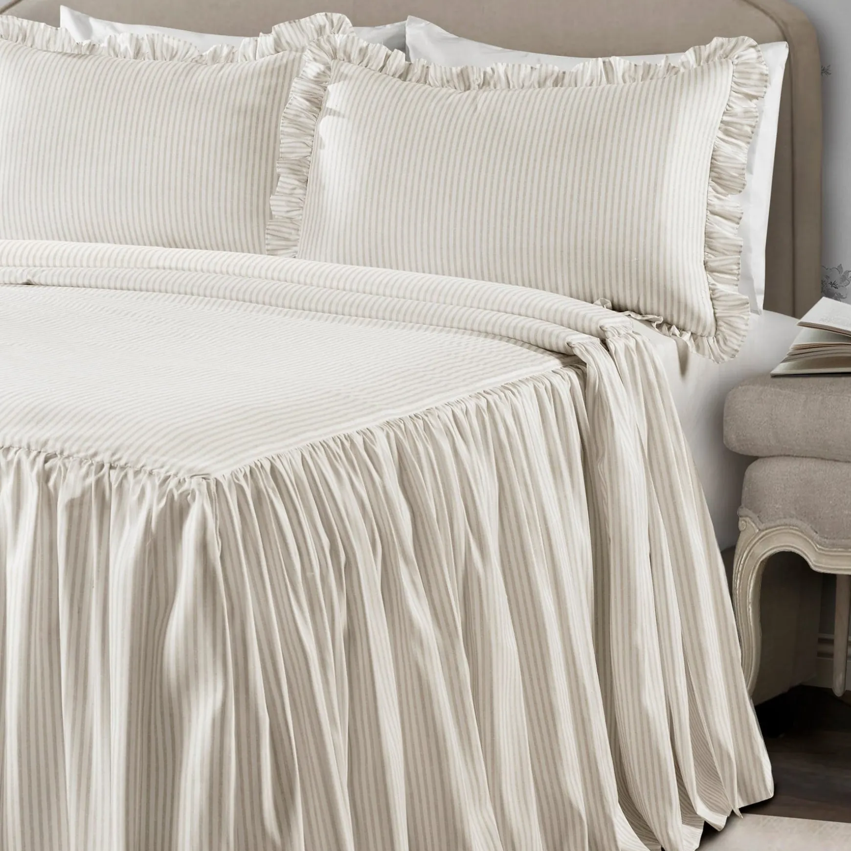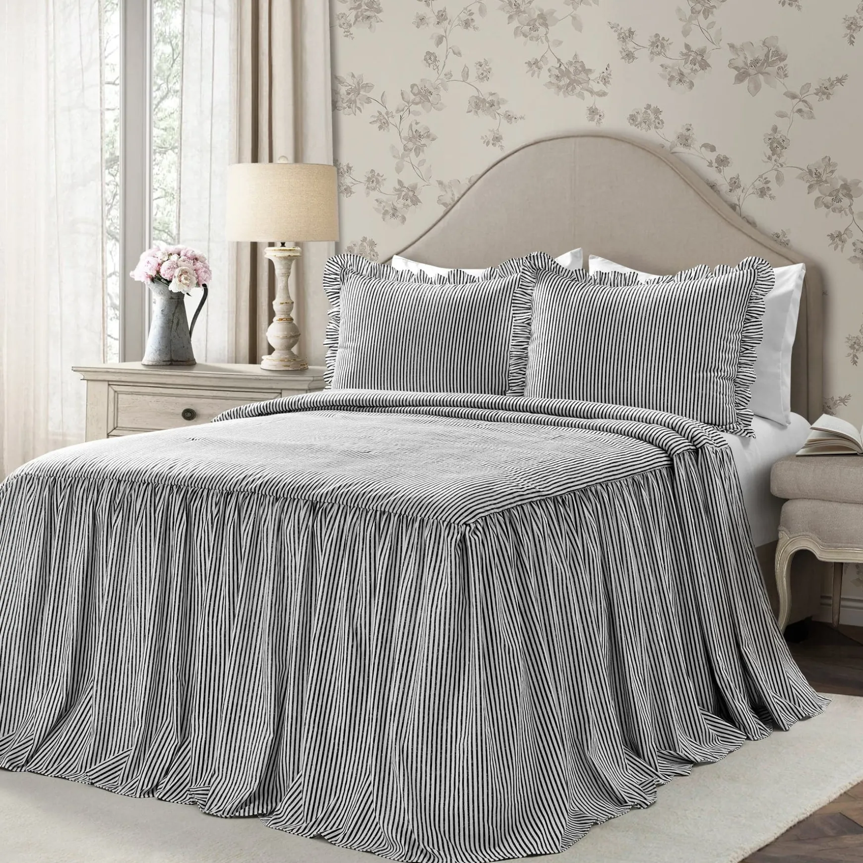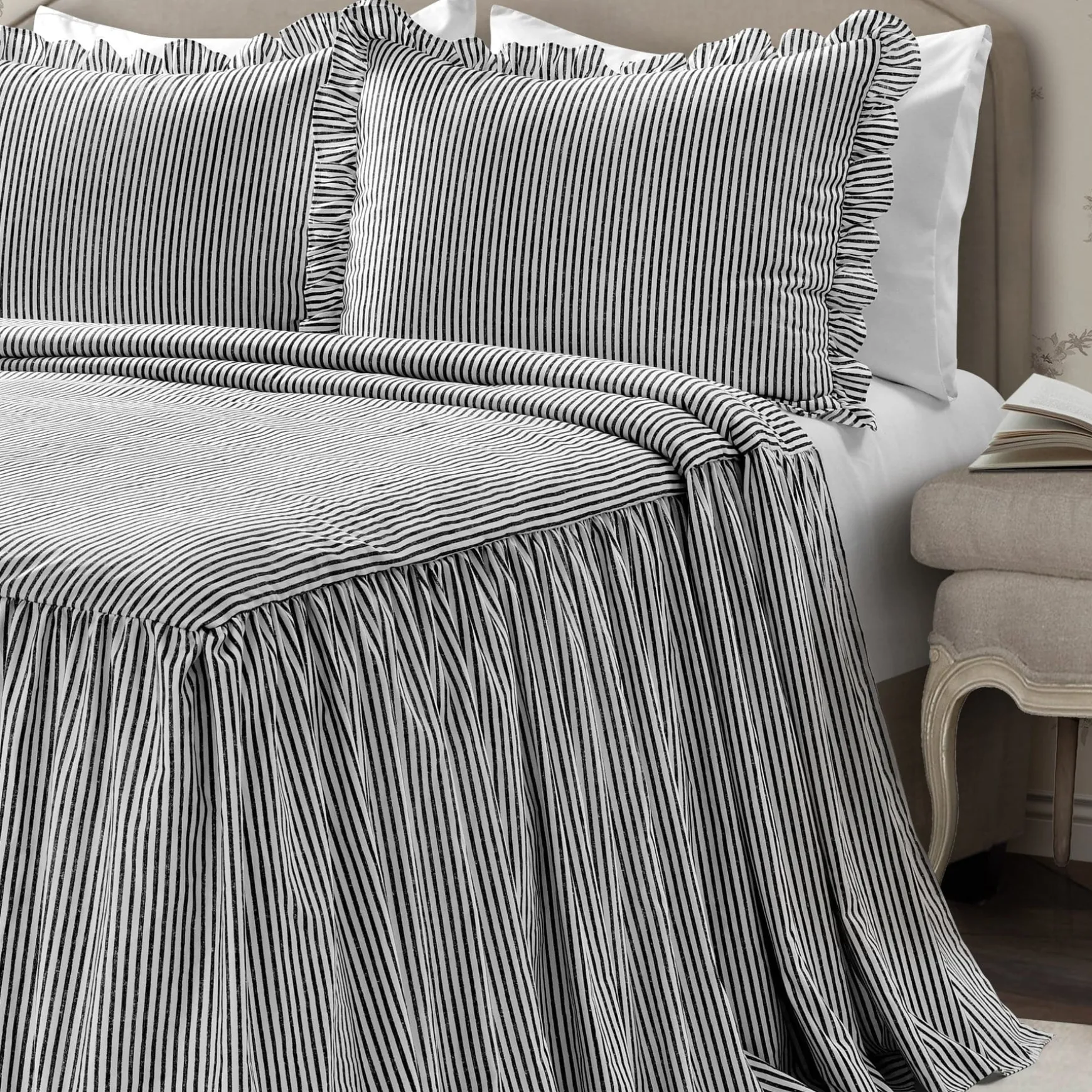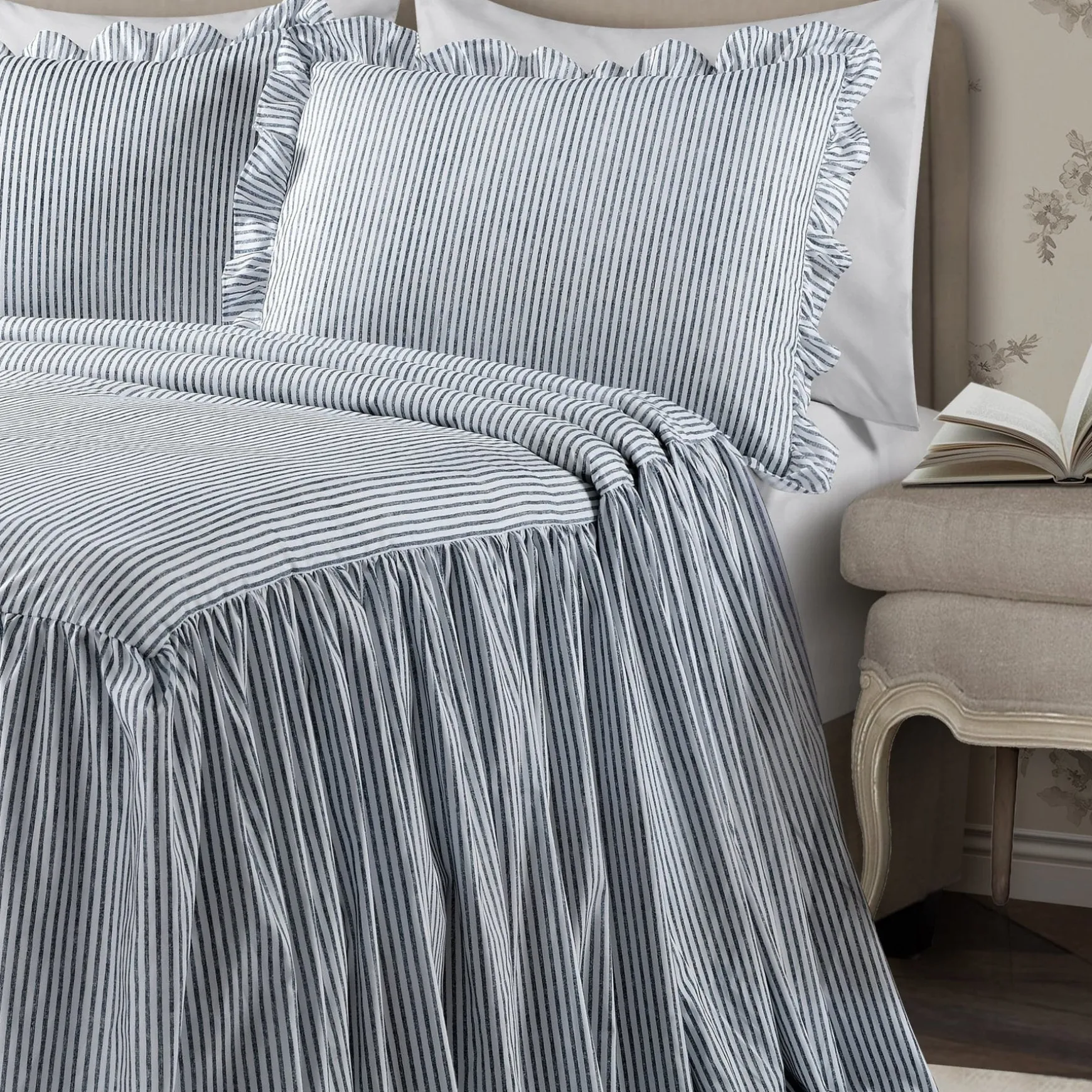 This Ticking Stripe Bedspread Set is sure to impress all your guests with the incredible amount of special details that are incorporated in the design. Its generous size will create the beautiful overhang look for a more glamorous feel.