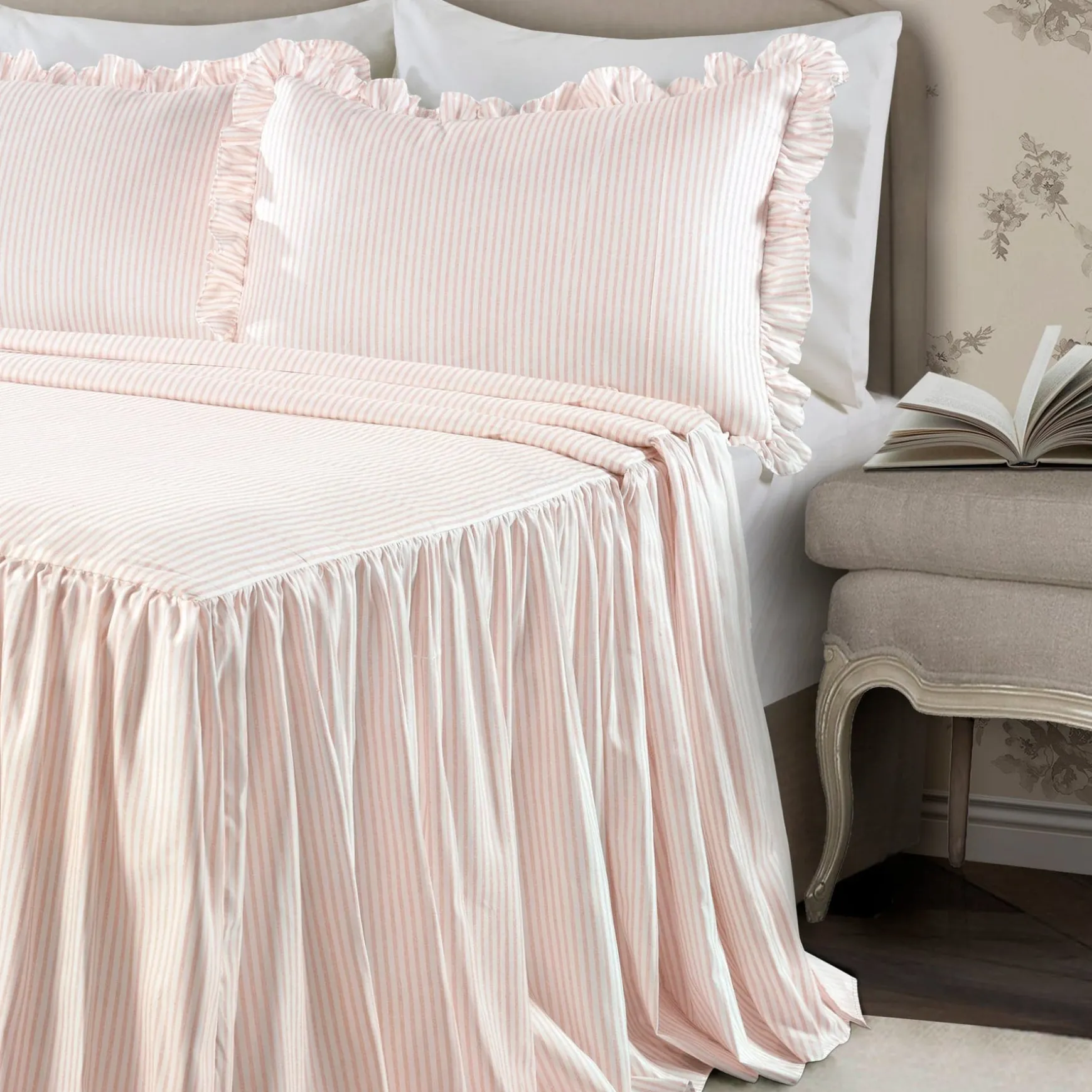 From a child’s bedroom to your own master bedroom, this Ticking Stripe Bedspread Set is ideal for use for all ages. Give your daughter a lovely first big girl bedroom, or update your teenager’s bedroom into a princess palace. This set would even look fabulous in dorm rooms, guest bedrooms and master bedrooms.
