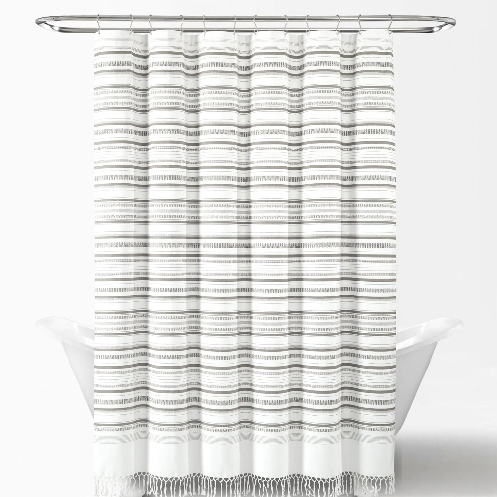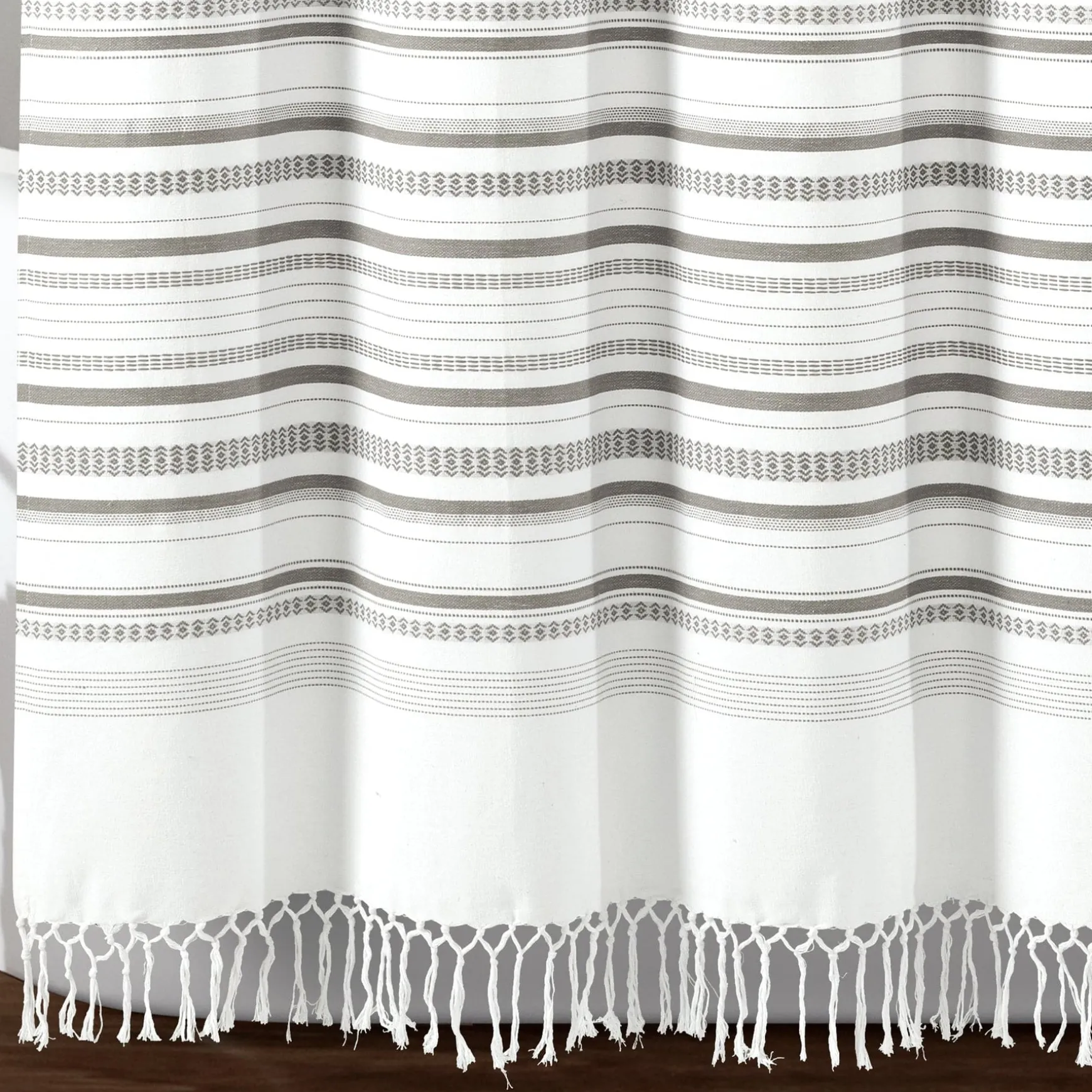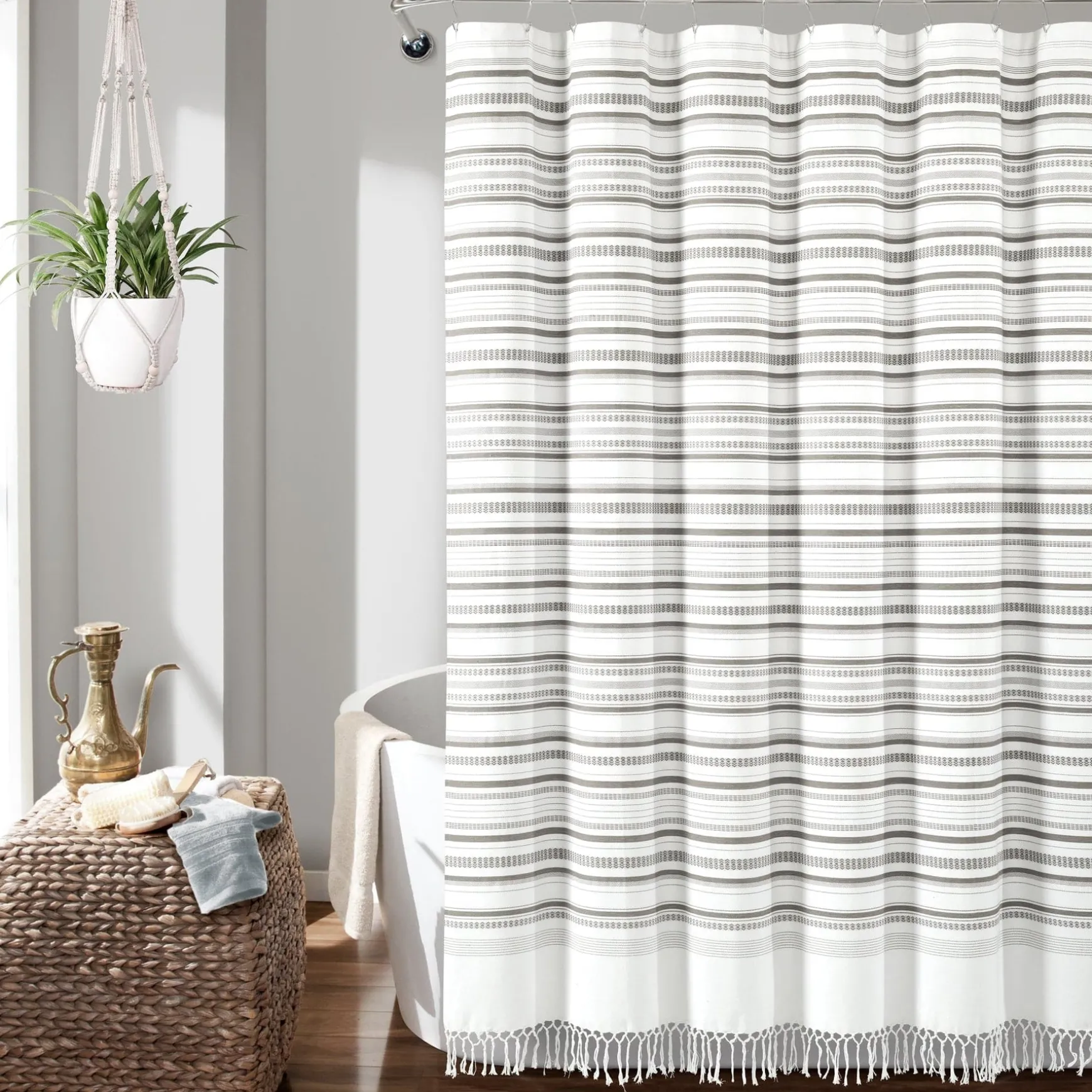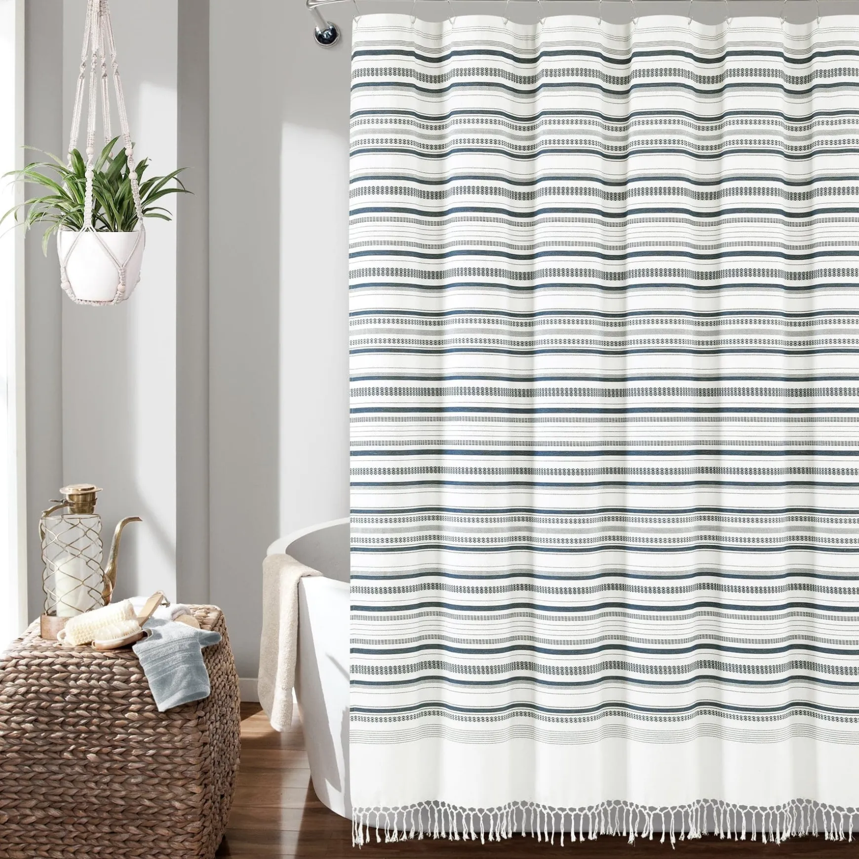 Create an inviting and cozy space in your primary, guest, or teen’s bathroom when you add this Urban Woven Yarn Dyed Recycled Cotton Shower Curtain. The neutral toned alternating horizontal striped pattern paired with the delicate tassel fringe makes this piece easy to style with your existing bathroom decor. Plus, the eco-friendly recycled cotton makes this a purchase you can feel good about.
