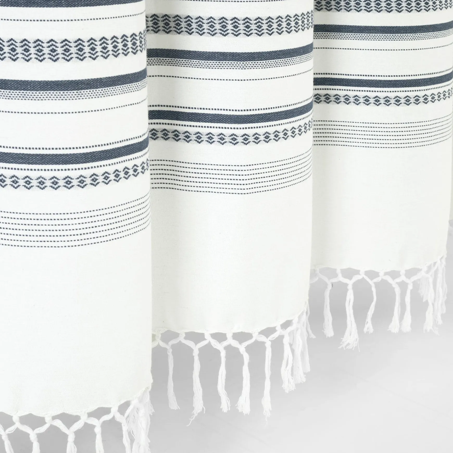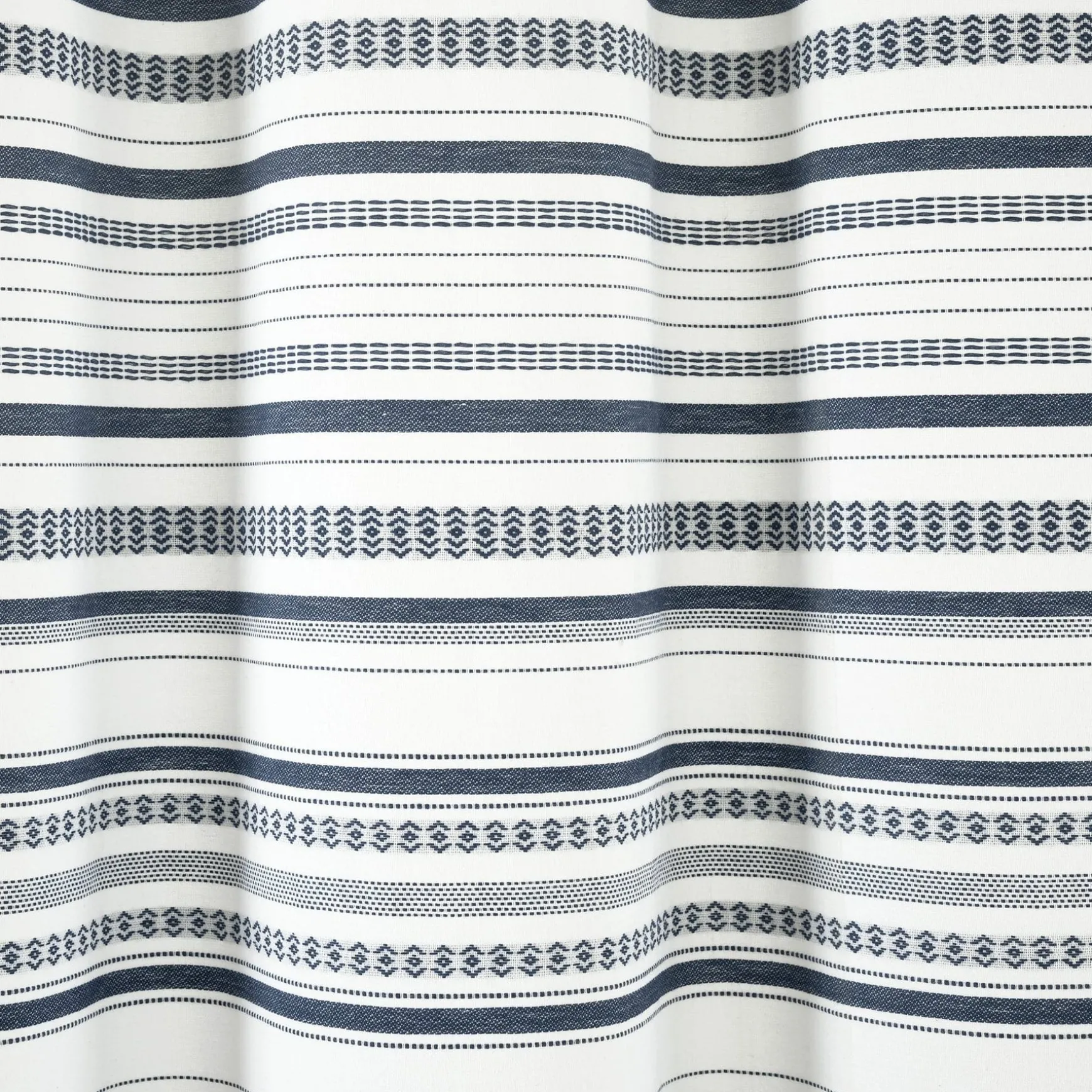 Refresh your bathroom decor with this contemporary Urban Woven Yarn Dyed Recycled Cotton Blend Shower Curtain. The unique alternating horizontal striped pattern adds dimension to your space along with the tassel fringe detail at the bottom.
