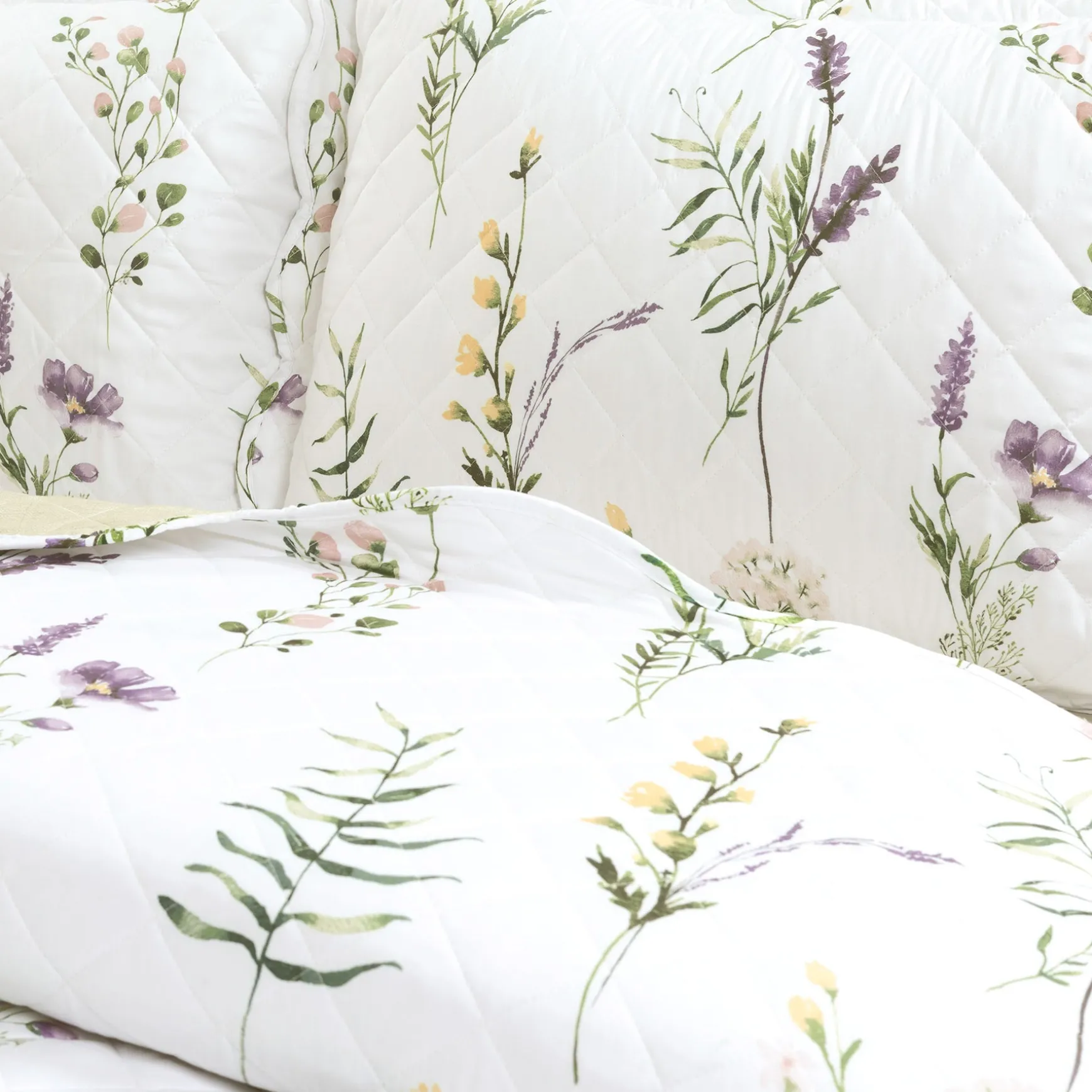Brighten your bedroom with the relaxing floral pattern of our Watercolor Wildflower Scallop Edge Floral 3 Piece Quilt Set. The welcoming print of this quilt set evokes the joyous, free-spirit feeling of relaxing on a bed of colorful wild flowers.