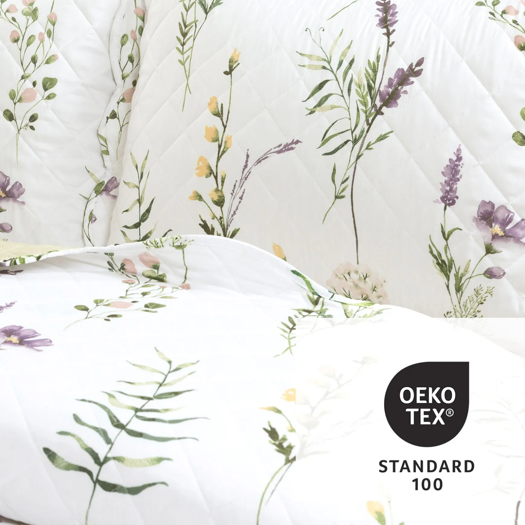 Lush Decor has enhanced its products for your health and well-being. This Watercolor Wildflower Scallop Edge Floral 3 Piece Quilt Set is STANDARD 100 by OEKO-TEX® certified, which means the fabric, dyes and all components have been tested in an independent laboratory and certified against a list of more than 350 harmful substances.