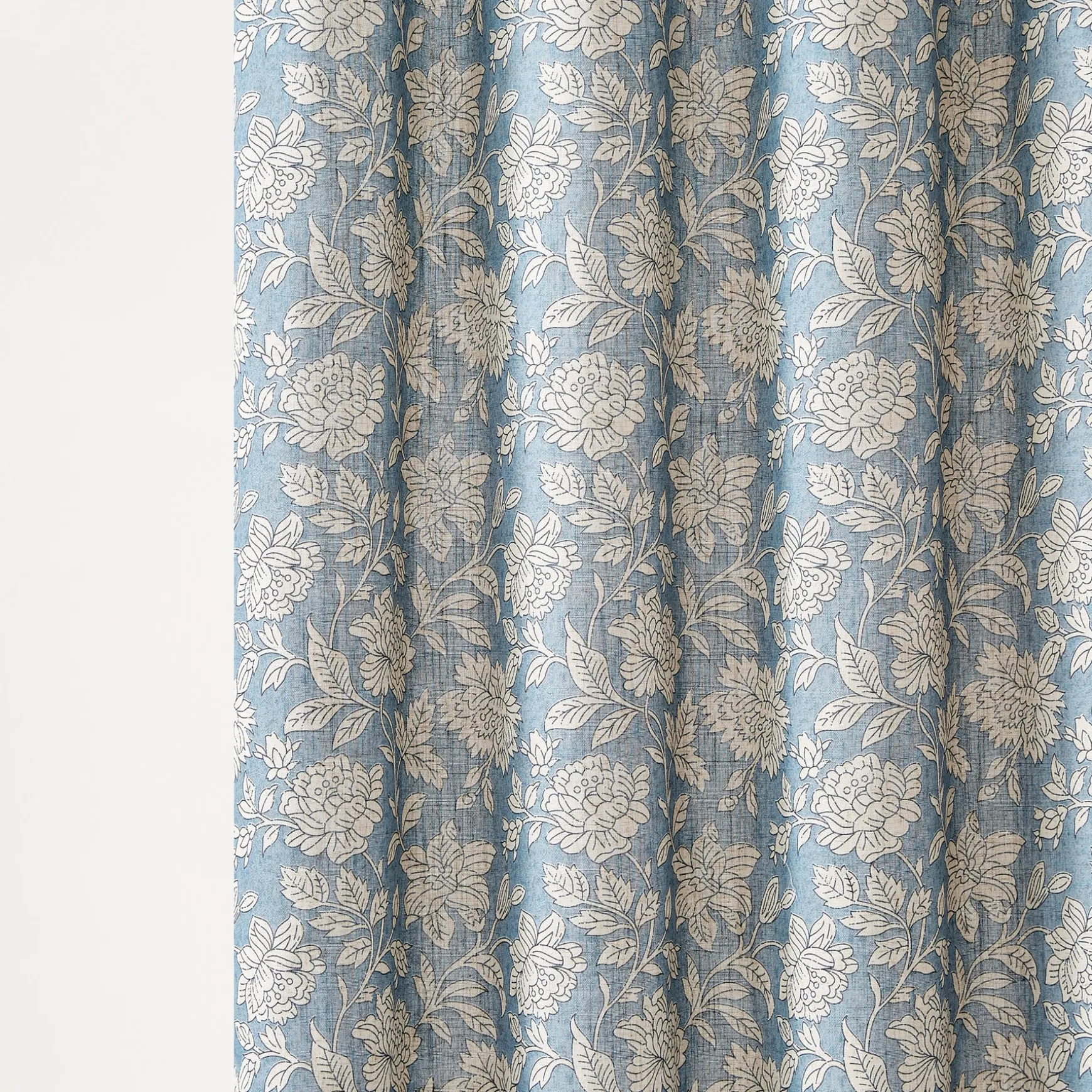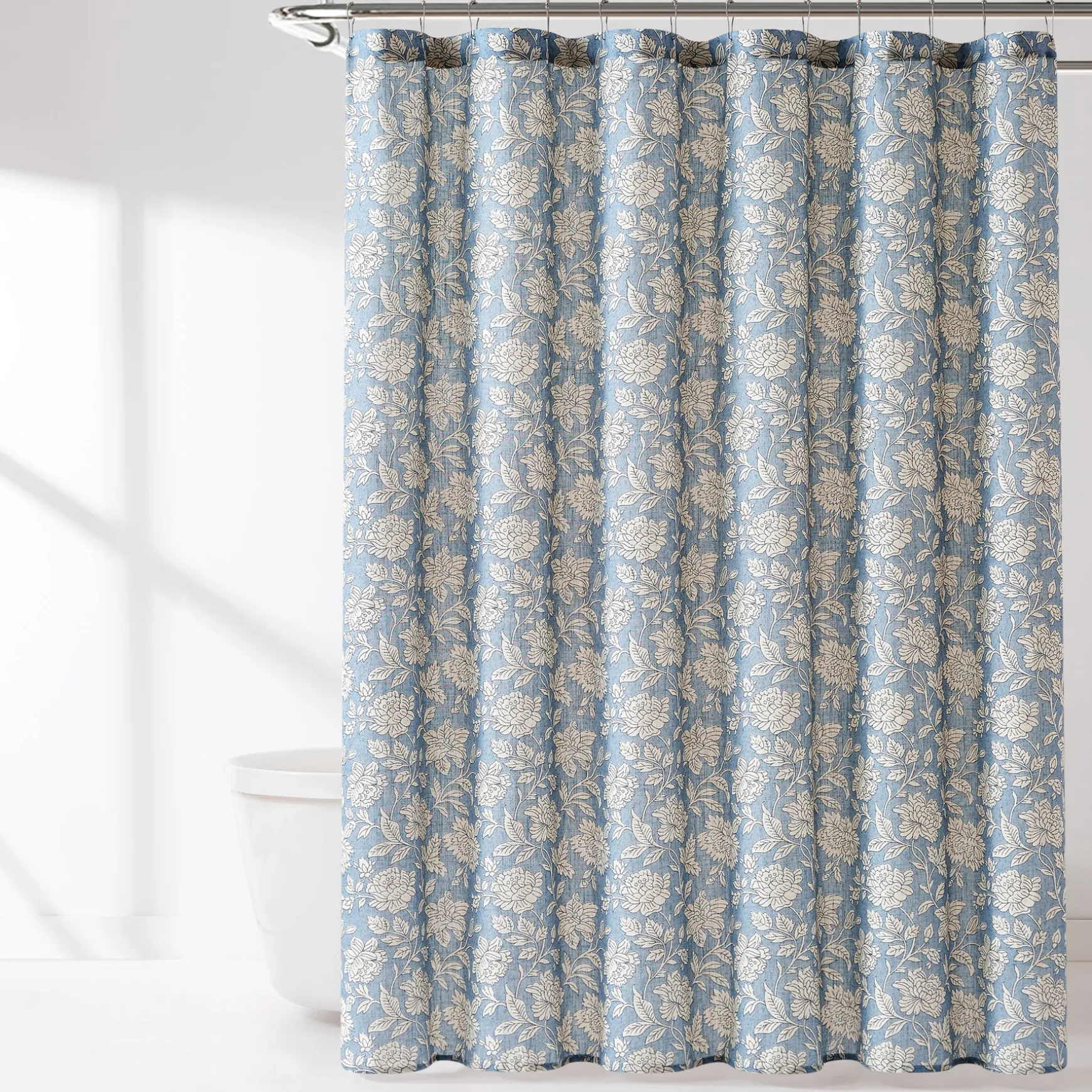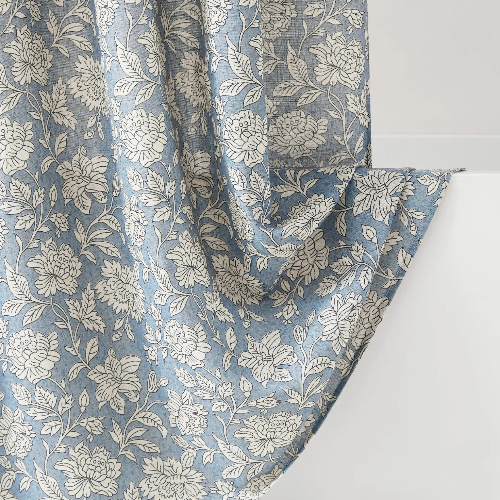 Add charming florals to your bathroom with this block print shower curtain. Featuring a classic floral print of blooming flowers, it complements vintage or coquette style homes. Crafted from a linen blend fabric for a natural texture. Sold as a single shower curtain and measures 72 inches wide by 72 inches long. Installation is easy with 12 button holes at the top to hang with shower hooks or rings. Pair this fabric shower curtain with a liner, sold separately. Machine washable for easy care.