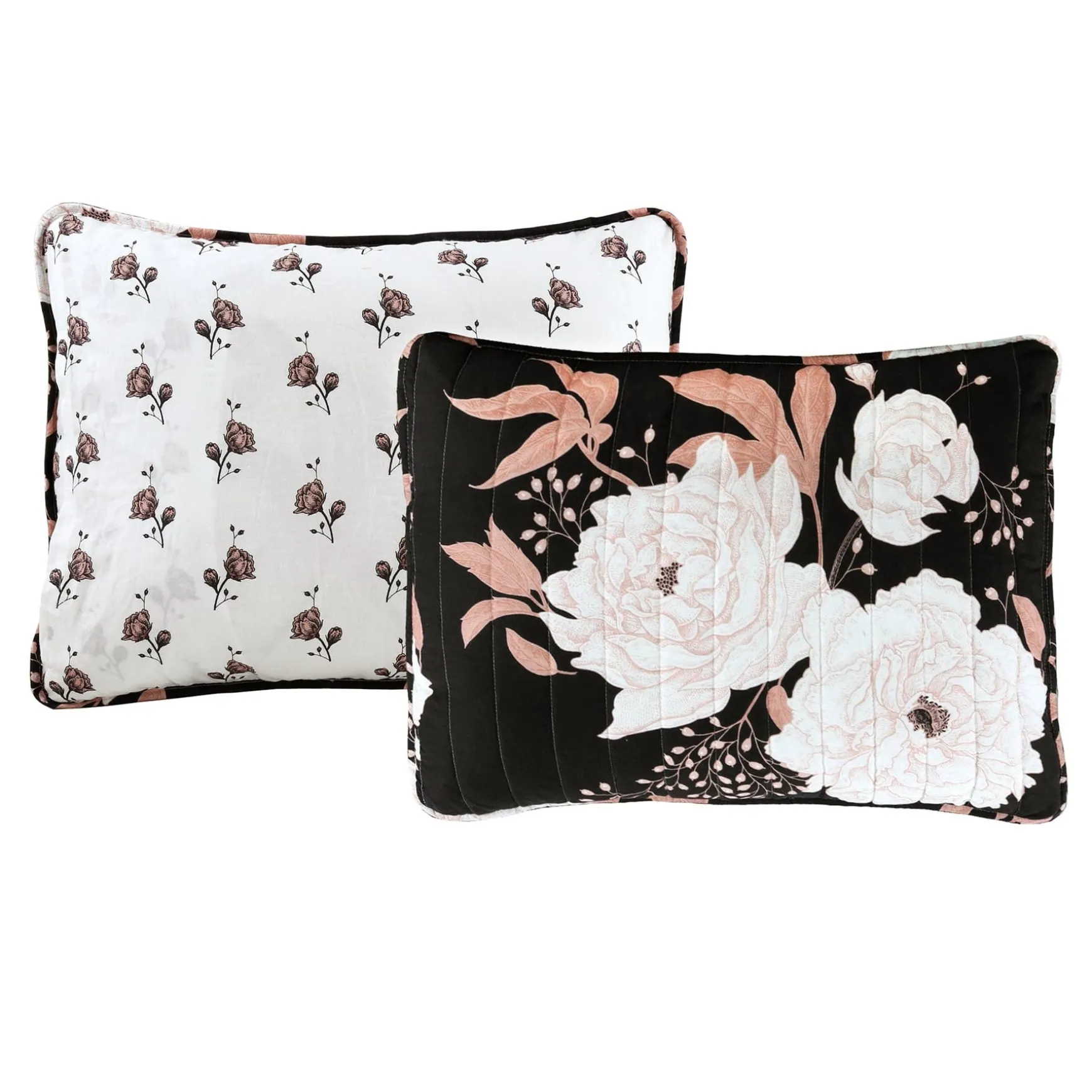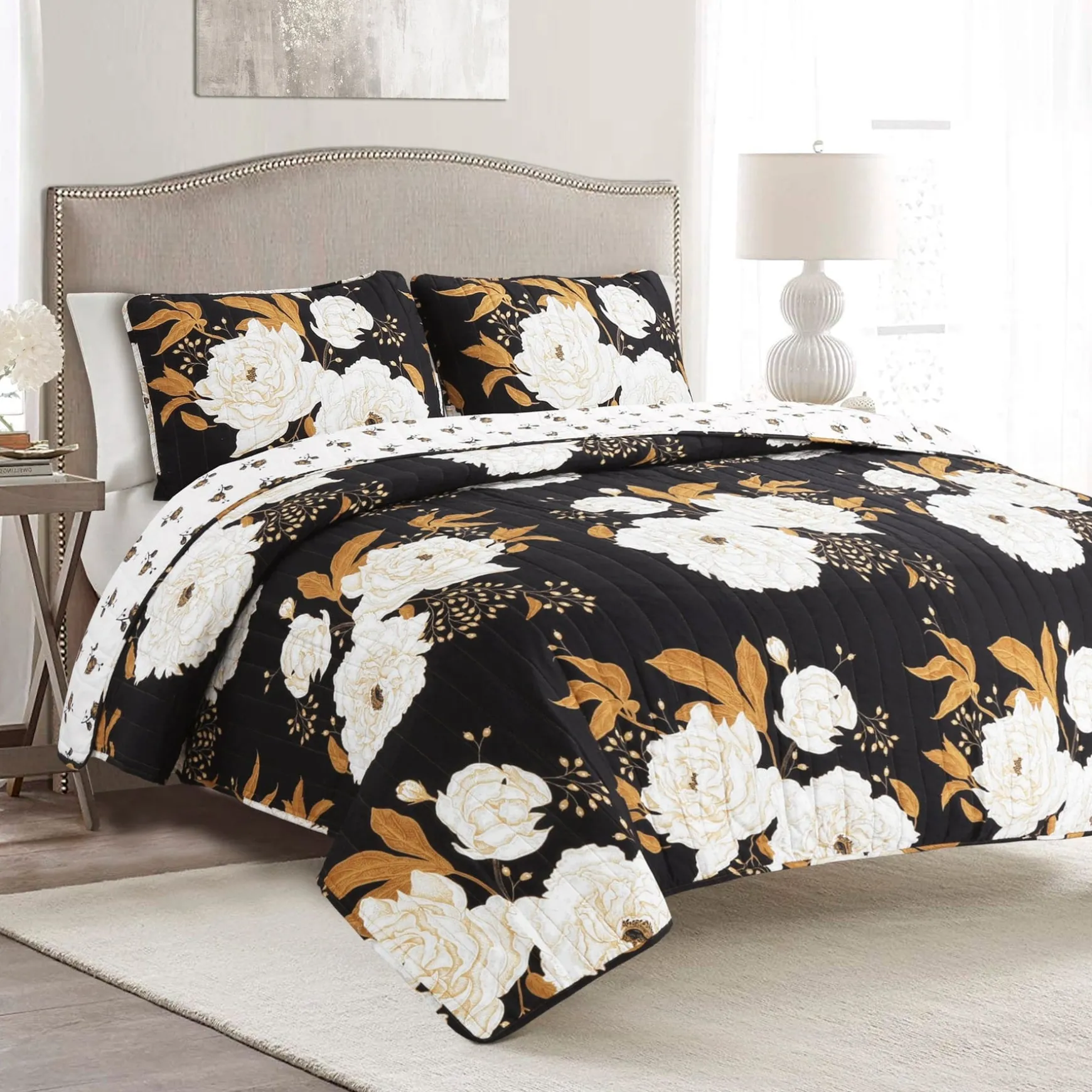 The Zinnia Floral 3 Piece Quilt Set includes a soft, reversible cotton quilt, as well as two matching reversible pillow shams. This is a mid-weight quilt that can be used year round in warmer climates or in the spring and summer in cooler climates.